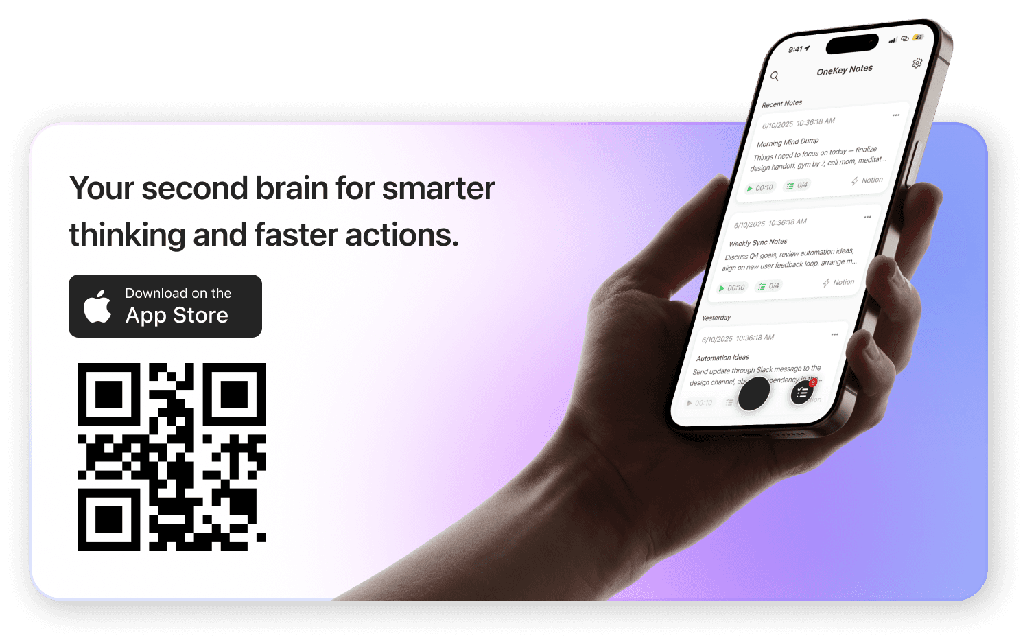 Speak freely and let OneKey handle the rest, turn spoken thoughts into organized notes, instant tasks, and automated actions.